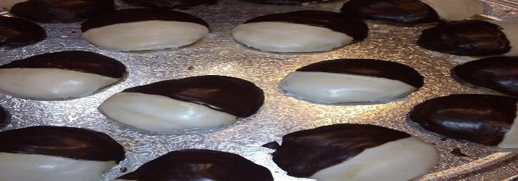 | ALTERNATE FROSTING For icings 1 1/2 cups confectioners sugar 1 tablespoon light corn syrup 2 teaspoons fresh lemon juice 1/4 teaspoon vanilla 1 to 2 tablespoons water 1/4 cup unsweetened Dutch-process cocoa powder Make icings while cookies chill: Stir together confectioners sugar, corn syrup, lemon juice, vanilla, and 1 tablespoon water in a small bowl until smooth. Transfer half of icing to another bowl and stir in cocoa, adding more water, 1/2 teaspoon at a time, to thin to same consistency as white icing. Ice cookies: Turn cookies flat sides up, then spread white icing over half of each and chocolate over other half. Read More http://www.epicurious.com/recipes/food/views/Black-and-White-Cookies-106171#ixzz2nPf1xwcW |