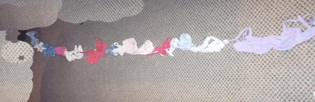 would be funny to tie all my bras and underwear together to make a chain out of them. It was actually